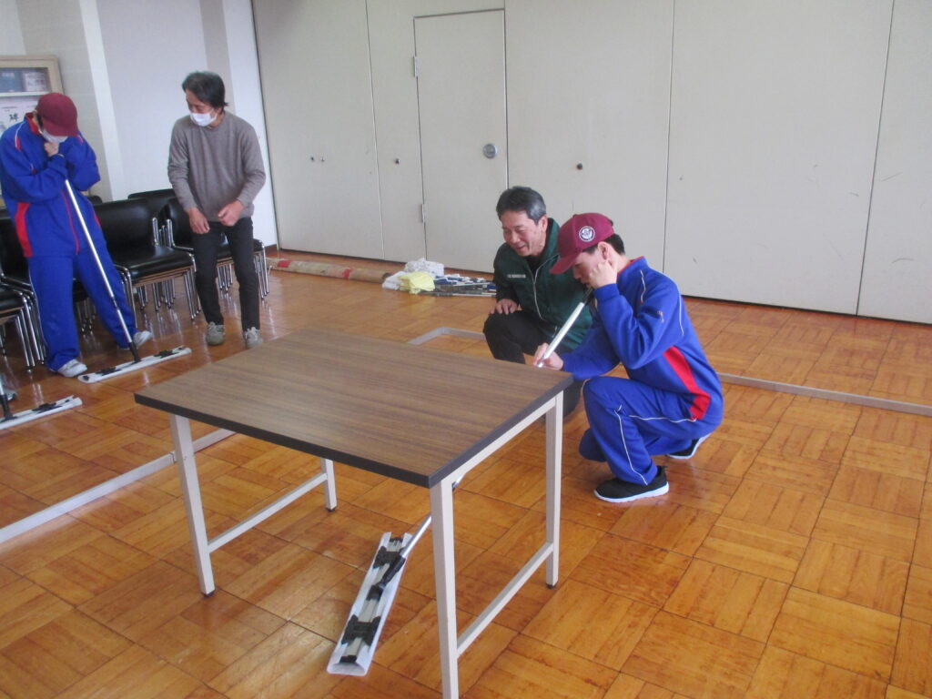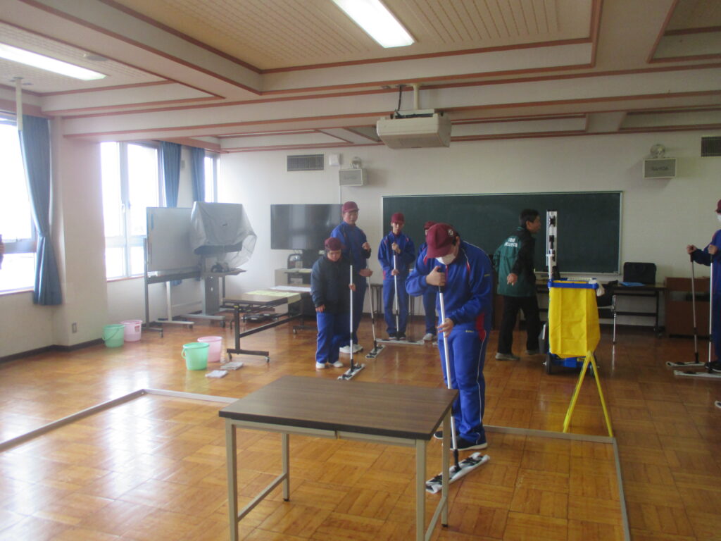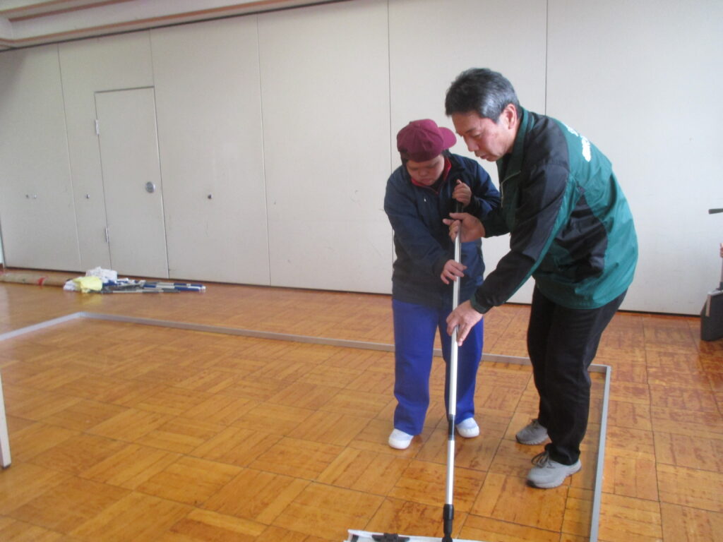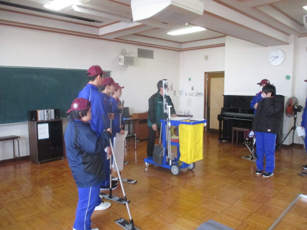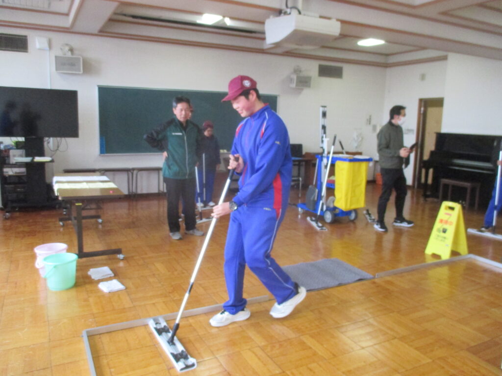 高等部クリーン班の生徒さんへ、ビルクリーニング技術向上のための指導を行いました。