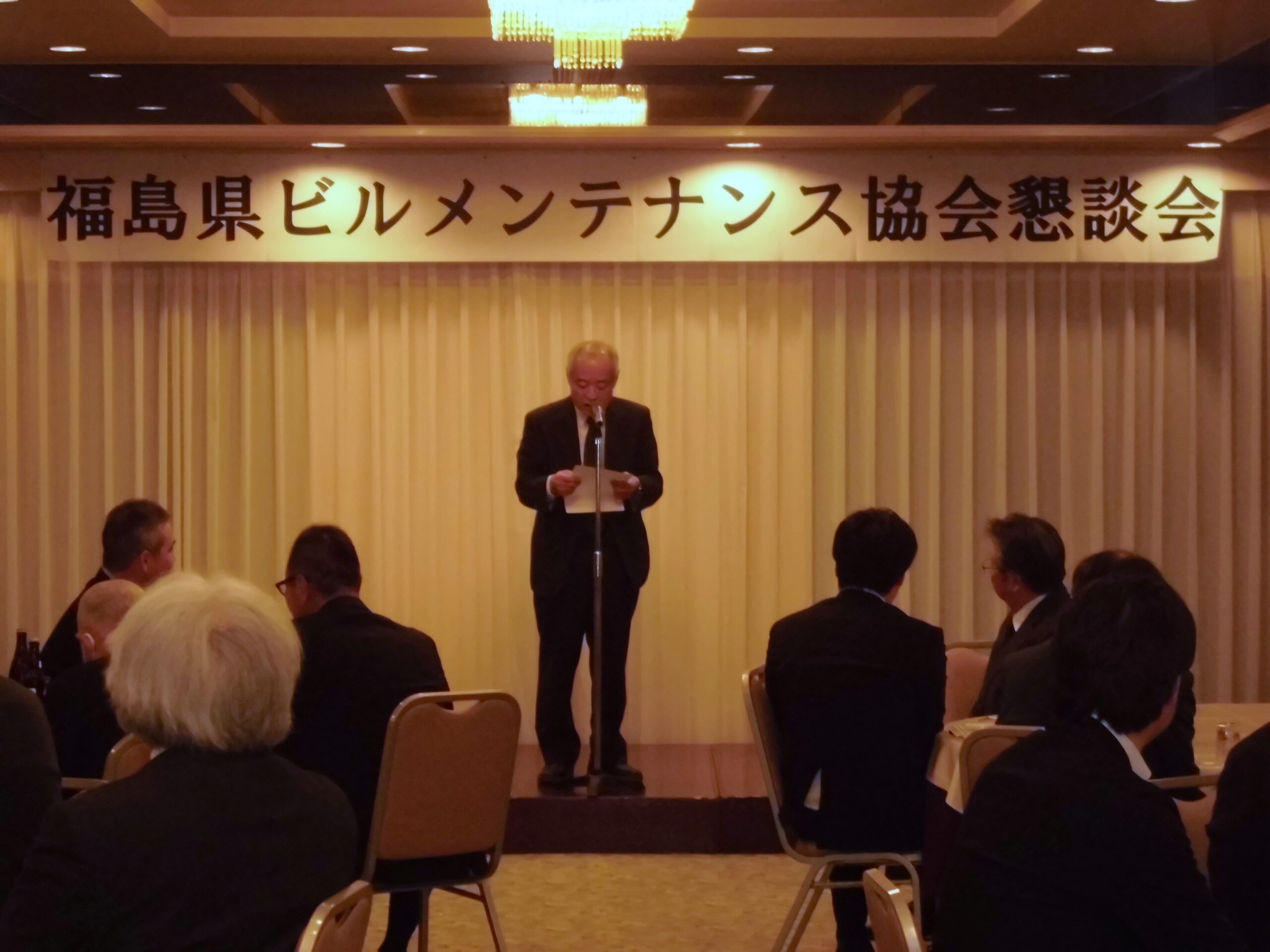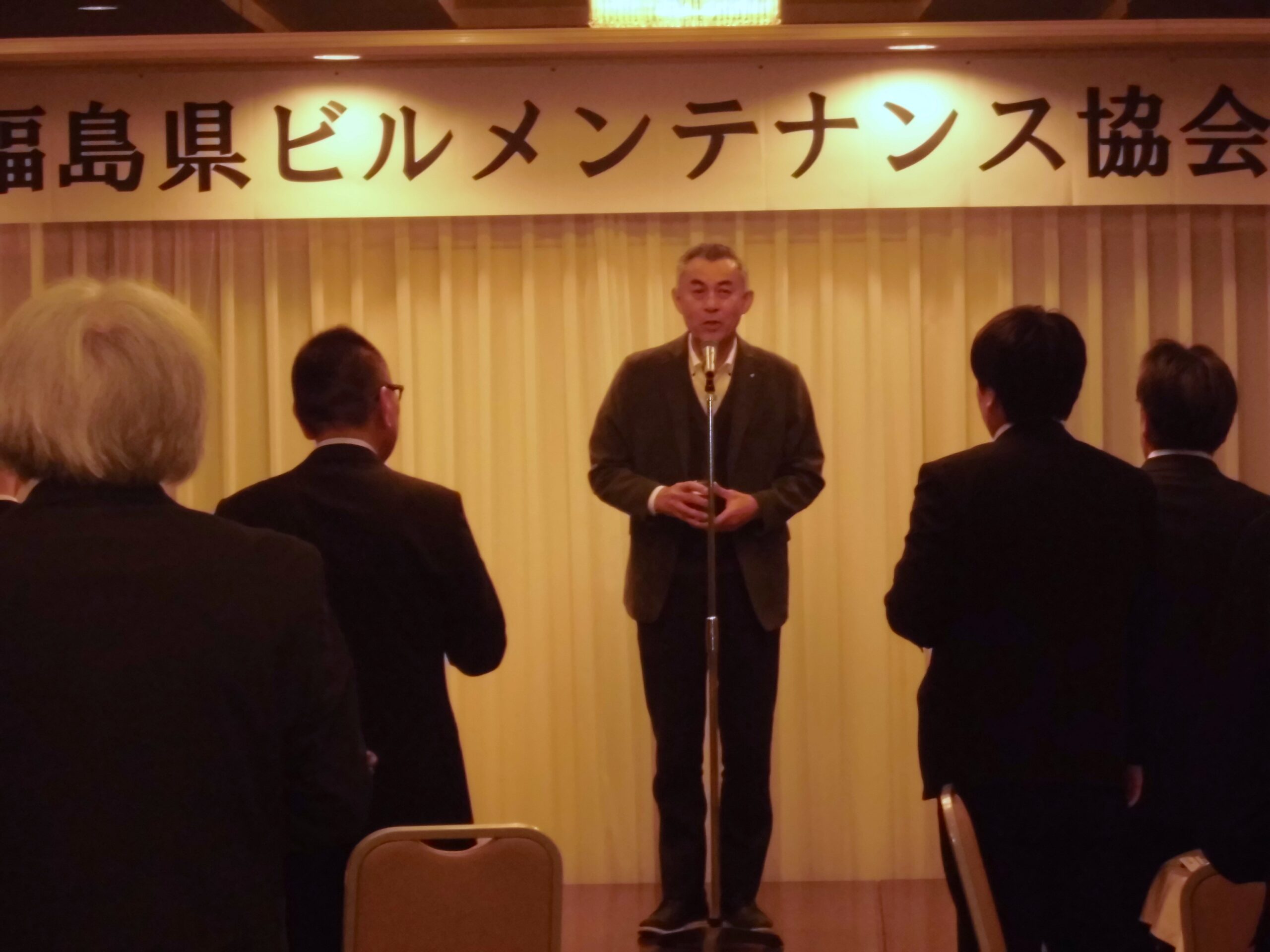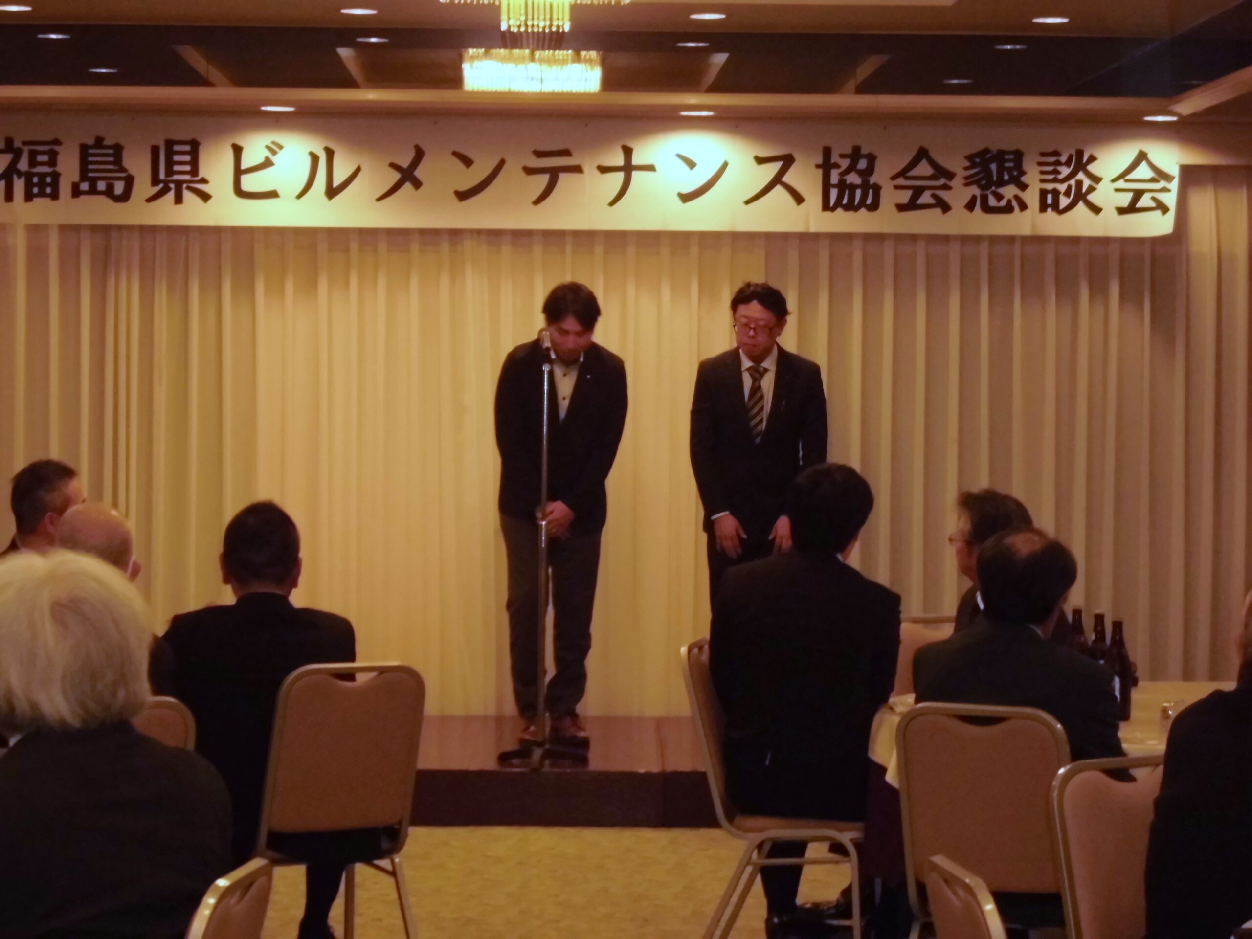 荒青年部長の司会進行で、荒副会長の開会の言葉、八巻会長より挨拶がありました。また今年新たに会員となられました、賛助会員アイリスオーヤマ㈱様、賛助会員西尾レントオール㈱様、正会員㈲ビルメンテナンス創美様より一言ご挨拶をいただいた後、㈱アサヒビルサービス味戸様の乾杯にて宴が始まりました。