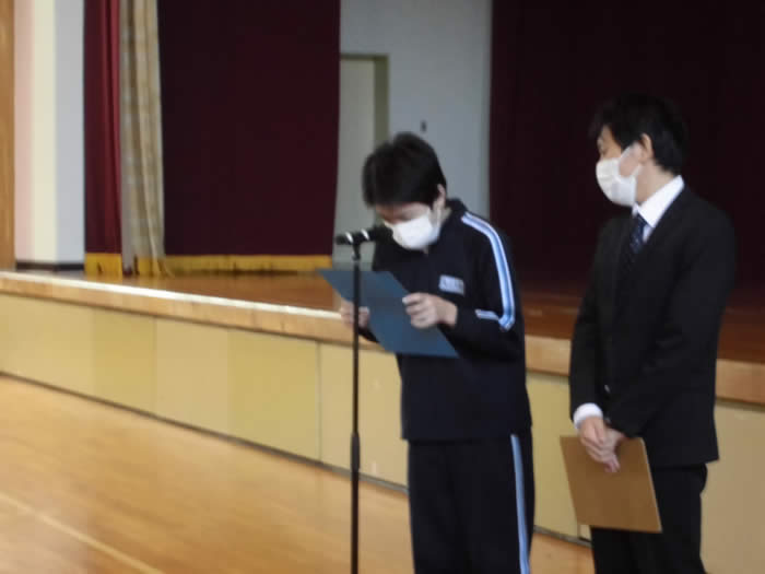 閉会式では、中学部生徒代表様から御礼の言葉をいただき、作業製品の贈呈で中学部クラフト班から『メモ帳』、紙工班から『油吸い取りパック』をいただきました。終始、笑顔と楽しい雰囲気の中、清掃奉仕活動を終わらせることが出来ました。いわき支援学校の皆さま、ありがとうございました。