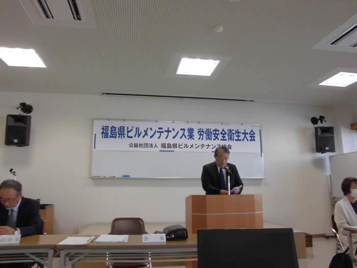 令和5年度ビルメンテナンス業労働安全衛生大会が、郡山市の労働福祉会館において開催されました(16社22名参加)。令和4年度に労働災害無事故の14社へ表彰を行い、代表して(株)タイセークリーンの小磯 駿様に表彰状が授与されました。