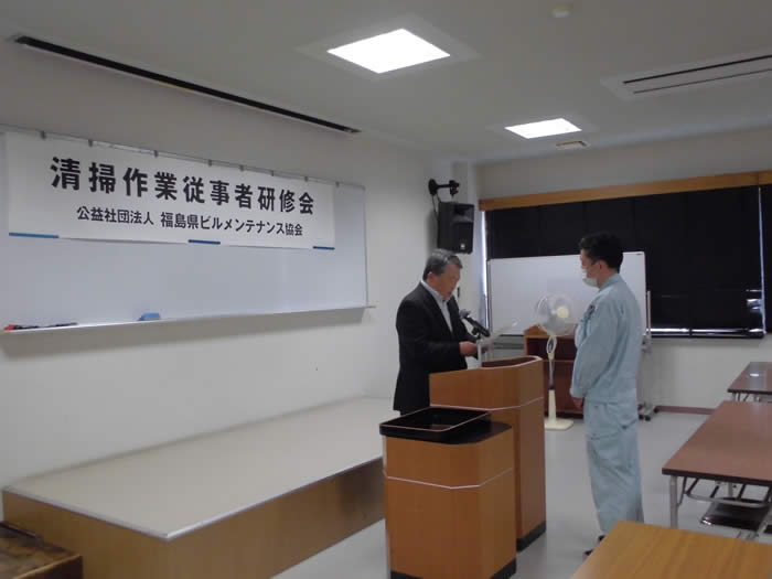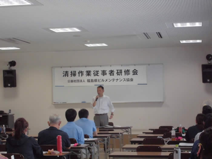 清掃作業従事者研修会が、郡山市の労働福祉会館において開催されました(14社23名参加)。