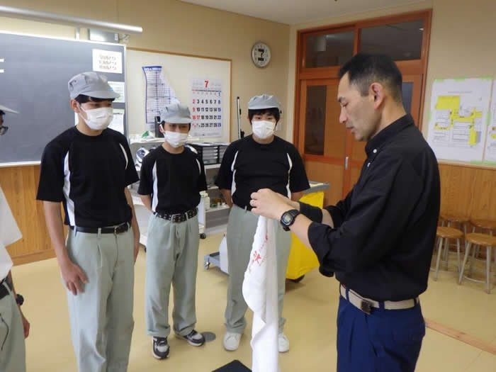 高等部農業・サービス班の生徒さんへ清掃の仕方等について技術指導を行いました。