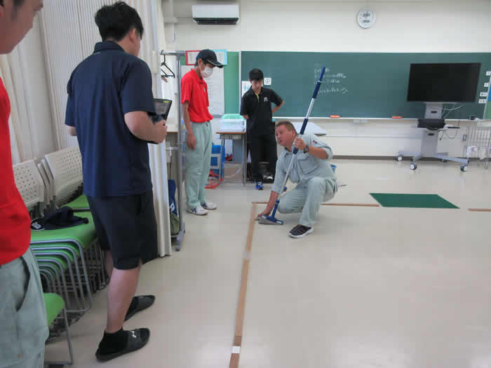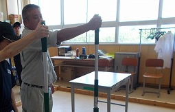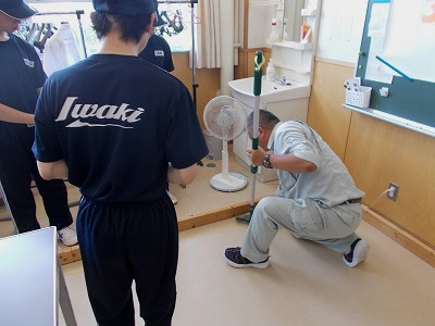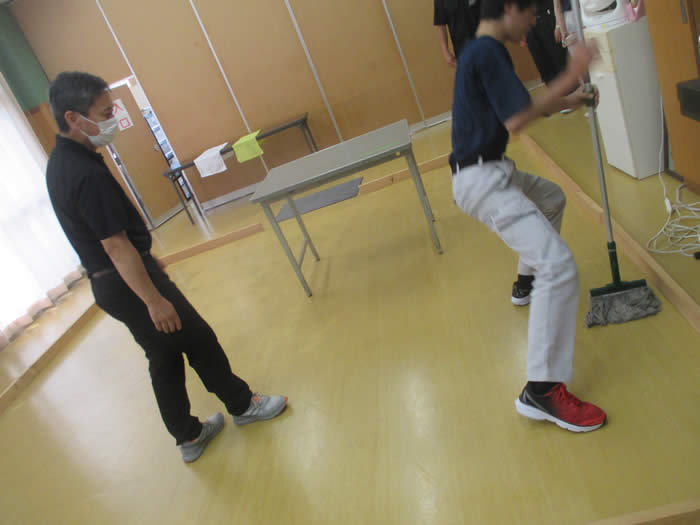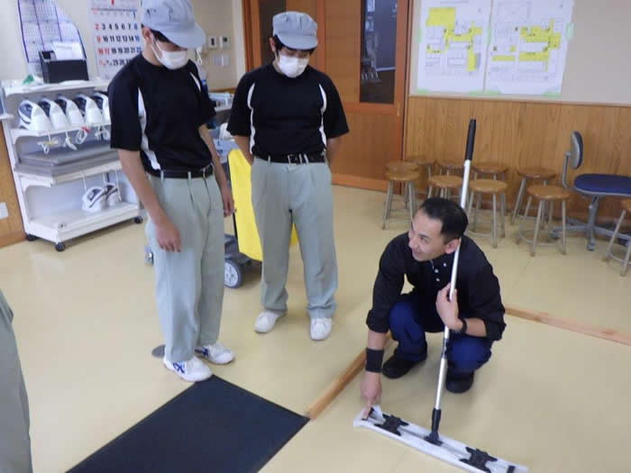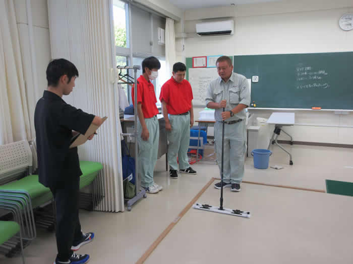 高等部の生徒さんへ清掃用具の正しい扱い方等について技術指導を行いました。