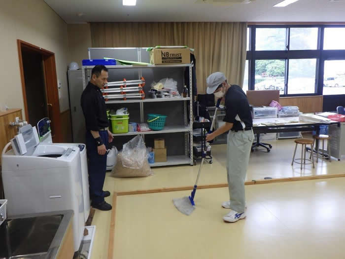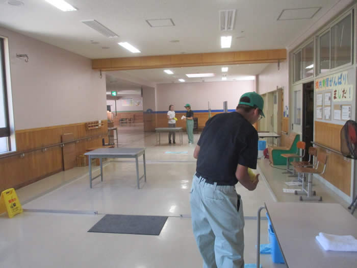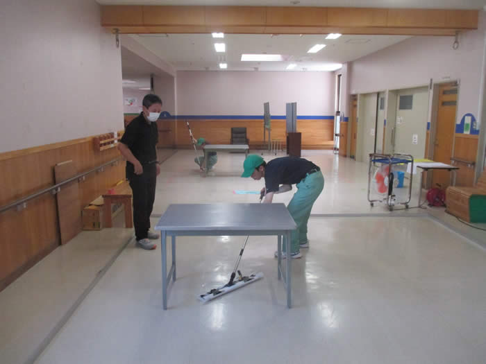 ビルクリーニング班の生徒さん達へ清掃作業について技術指導を行いました。
