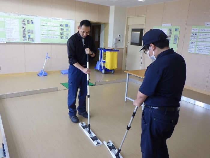 高等部の生徒さんへ清掃作業について技術指導を行いました。