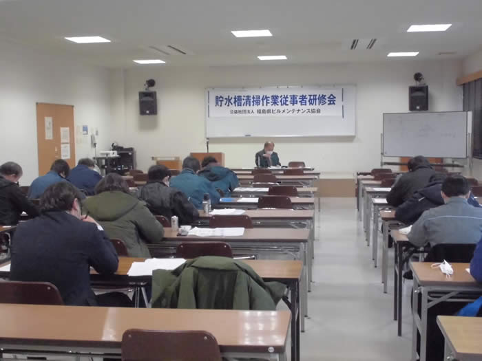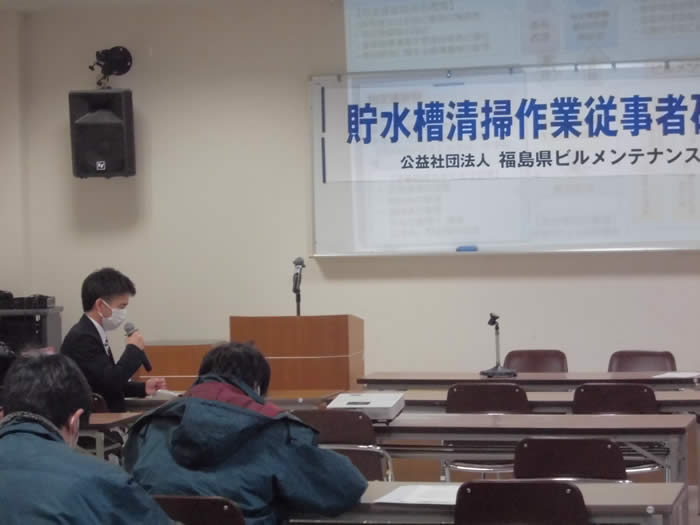 貯水槽清掃作業従事者研修会が、郡山市の労働福祉会館において開催されました。(9社15名参加)