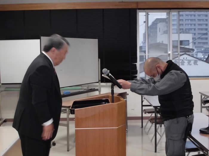 佐藤会長の挨拶の後、福島県食品生活衛生課の川合副主査から「建築物衛生法を中心とした関係法令」について、協会講師の太田幹(太平ビルサービス(株)郡山支店)、八巻照男(友愛プロサービス(株))、伊藤力恵(東日本ユニットサービス(株))の各氏から、「水と健康」「貯水槽の消毒方法」「作業の安全と衛生」「貯水槽の清掃方法」「貯水槽の塗装方法」「給水設備と機器」について講義が行われました。講義の終了後、佐藤会長から受講生を代表して、(株)太平ビルサービスの白川豊さんに修了証書が授与されました。