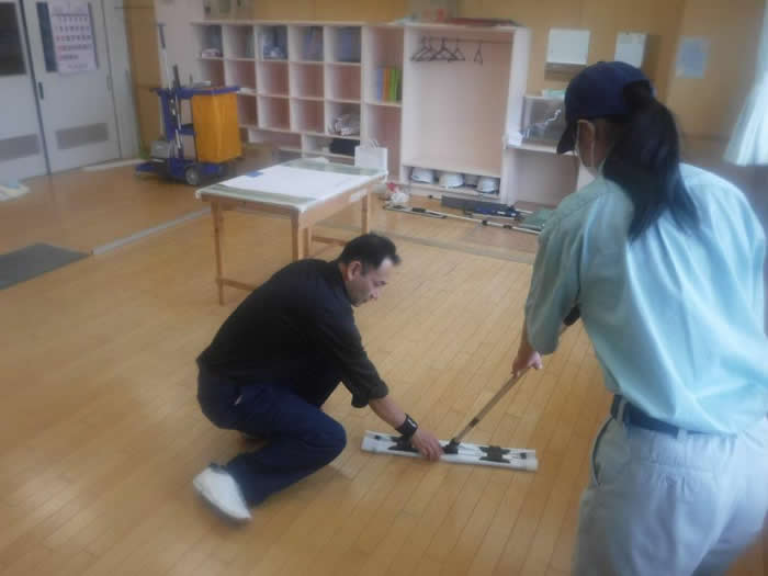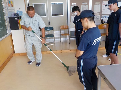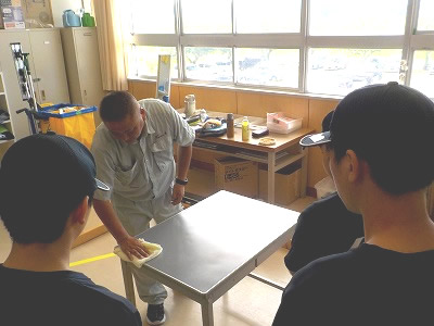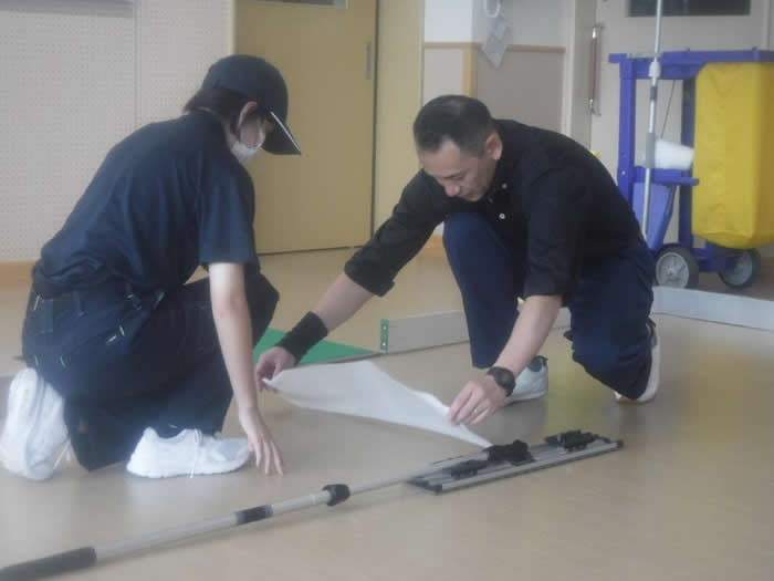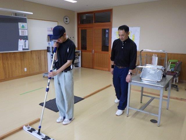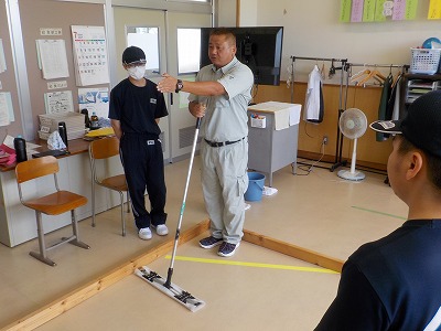 高等部の生徒さんへ清掃作業の技術指導を行いました。