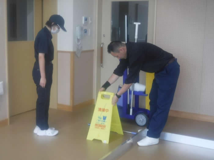高等部サービス班の生徒さんへ清掃作業の技術指導を行いました。