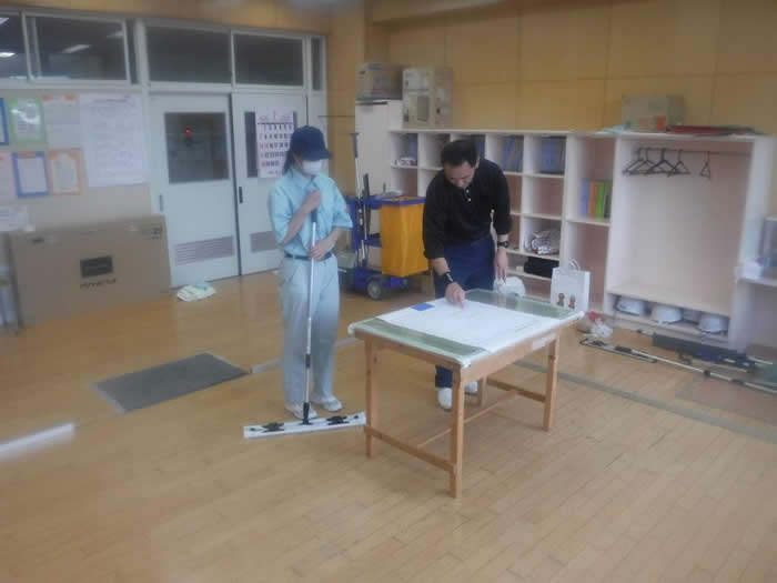 高等部の生徒さんへ清掃作業について技術指導を行いました。