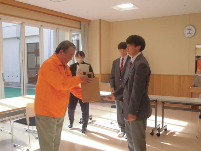 閉会式では、高等部の生徒代表から御礼の言葉をいただき、『のし袋』、『コースター』をいただきました。相馬支援学校の皆さま、本当にありがとうございました。
