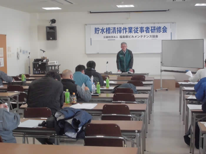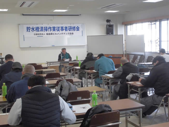 貯水槽清掃作業従事者研修会が、郡山市の労働福祉会館において8社15名が参加して開催されました。